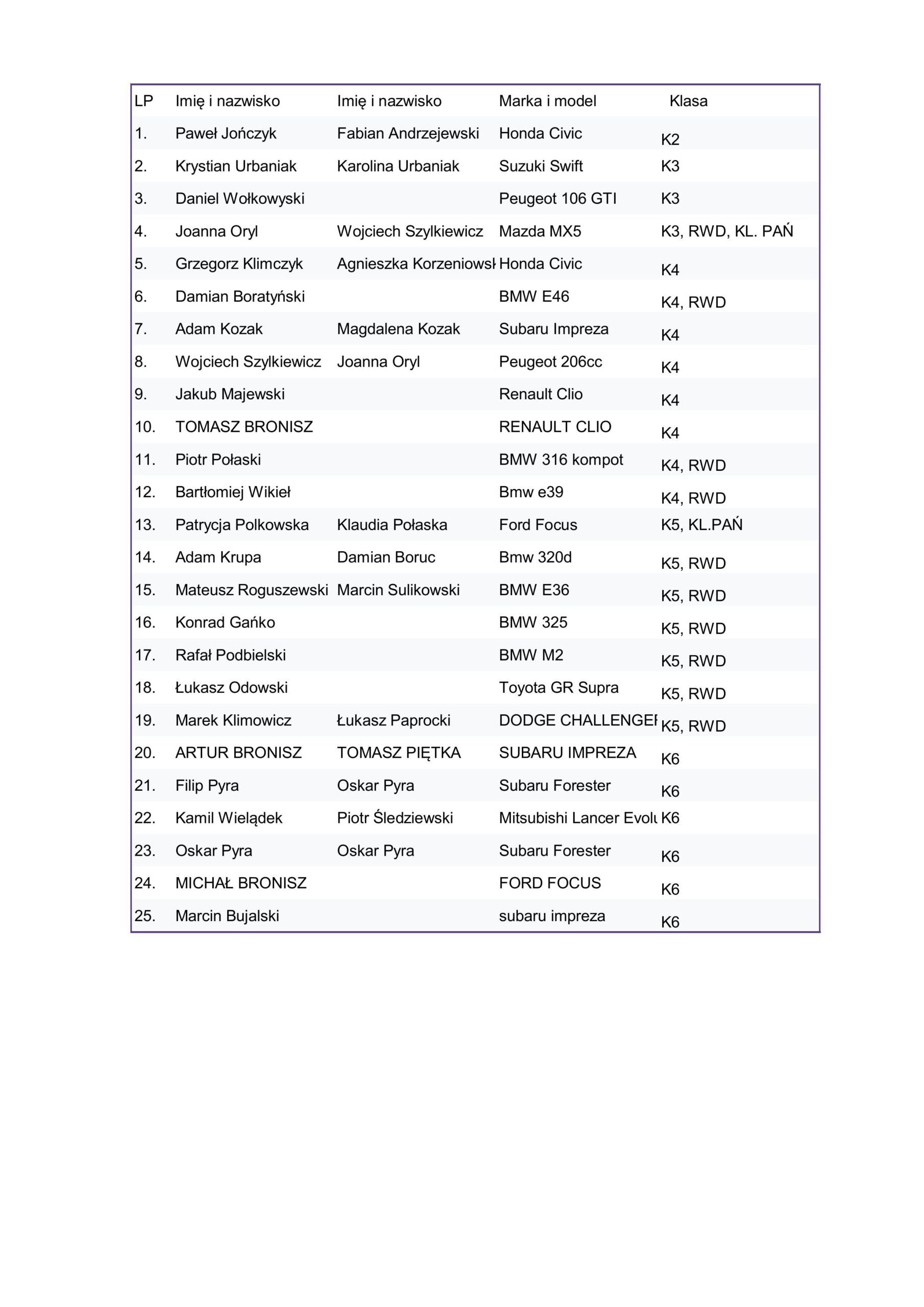 Lista startowa Węgrowski Rajd Niepodległości 2025